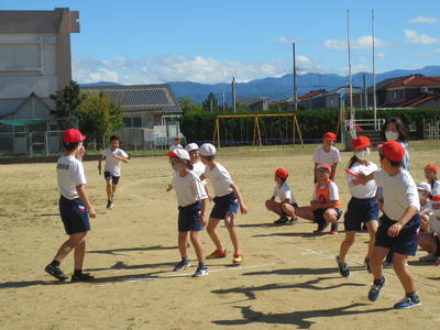 一年生の先生が出張でいらっしゃらないので、他の先生が代わりに体育を見てくれました。