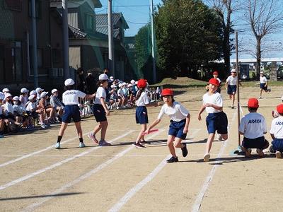 2 1,2年生のリレー「みんなできょうりょくバトンリレー」
