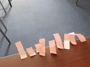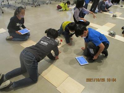 板の配置に合わせて、走る距離や曲がる角度など、試行錯誤を繰り返し、だんだんと思い描く動かし方に近づけていきます。