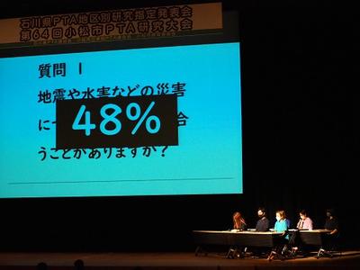 そのような荒屋地区の特性を知り、子ども達や大切な家族の命を守るために、昨年度から育友会が取り組んできたテーマ「ぼくたち、わたしたちの防災」について、小松市PTA研究大会で発表する機会がありました。