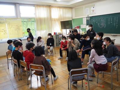 本来は、中学校に小学6年生が集まる予定でしたが、今年はコロナのため、zoomでのネット会議となり、中学3年生が話し合いのリーダーとしてそれぞれの小学校に来てくれました。