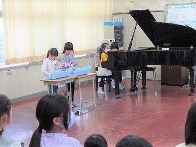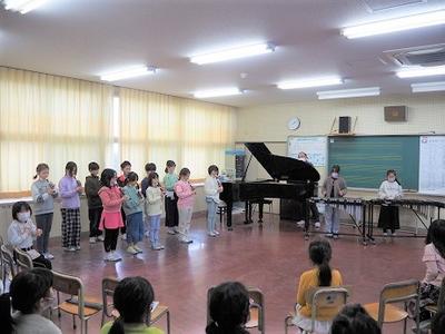 音楽の時間や休み時間に練習した曲が披露され、どこからか一緒に歌う声も聞こえてきて、音楽室がとても楽しく、ウキウキする空間になりました。