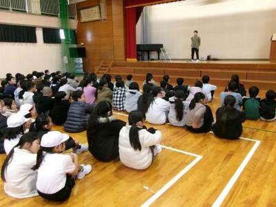 2月3日(火)昼休みに体育館で、レシテーションコンテストに出場する4名の子どもたちが、みんなの前でリハーサルを行いました。レシテーションコンテストは、長くて難しい英語の文章を覚え、表現をつけたり自分の意見を交えたりしながら発表するものです。どの子も堂々と、しっかりと覚え、強弱をつけて発表する姿がとても素敵でした。本番は11日です。頑張ってくださいね。