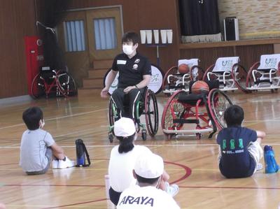 荒屋小学校には、車椅子バスケットボール元日本代表キャプテン 根木慎志(ねぎしんじ)さんが来てくださり、5,6年生にお話をしてくださいました。