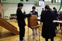 放課後に開票作業を行い、結果は明日に校内で掲示します。教頭先生のお話にもあったように、生徒会の会員が生徒全員であることを意識し、1,2年生の全員で来年度の丸中をつくるという意識で、卒業式や残りの日々も過ごしていきましょう。