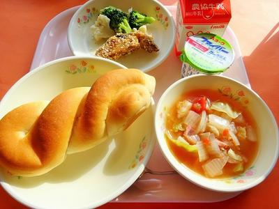 米粉バターパン 牛乳 あじのアングレーズ 花野菜のサラダ ミネストローネ ヨーグルト |