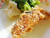 片栗粉をつけて揚げたあじに、「アングレーズソース」を浸して、炒ったパン粉をまぶす料理です。