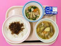 ・ごはん ・牛乳 ・治部煮 ・めった汁 ・あみえびの佃煮 |