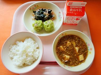 ごはん 牛乳 枝豆シューマイ 金時草の中華和え 麻婆豆腐 |