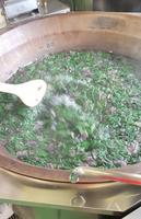 金時草をゆでたゆで汁は金時草の 葉の色、むらさき色になります。 このゆで汁を利用して、 ゼリーを作って食べることもあります。 |