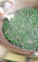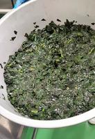冷却した金時草 すこーしぬめりがあるかな? 色はみどり色…?
