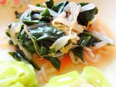 金時草の赤むらさき色ので、もやしもほんのりピンクに染まりました♪