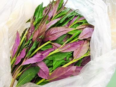 金時草は葉の表が緑色、葉の裏がむらさき色をした野菜です。