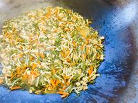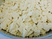 けんちん汁を作るときとは違い、 調理員さんが木綿豆腐を手でちぎってくれました! おかげで炒めると豆腐がいい具合に崩れてきました♪ |