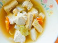 調理員さんがひいた、たっぷりのだしと 豆腐を炒めたときのごま油の香りがする やさしい味のかみなり汁です。