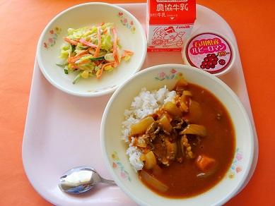 トマトカレー(麦ごはん) 牛乳 アロマレッドのコールスロー ルビーロマンゼリー |