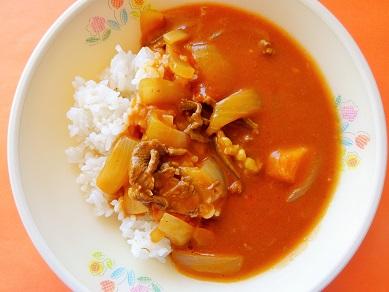 小松産のトマトを給食で使うことはできませんでしたが、小松市で人気のトマトカレーを味わいました。