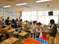 安宅小で一番給食を食べてくれる5年1組。 カレー増量のおかわりの列は 教室の一番後ろまで続きます。 |