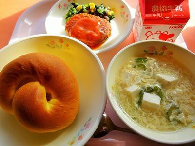 キャロットパン 牛乳 煮込みハンバーグ 小松菜のソテー たまごスープ |