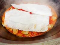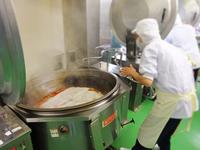 「史上最高に熱い~~!!」と言いながら ハンバーグを直接釜から取り上げて 数を数えてくれた調理員さん。 できあがって粗熱はとりますが 煮汁に使っている釜の中心や 底の方のハンバーグはまだまだ熱々です。 |