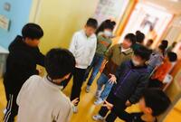5年生教室の前では、欠席の子のセレクトメニューをめぐって