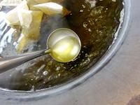 「黄金だし、とれましたかね?」 と、こだわって時間をかけて丁寧にひいてくれただしです。 途中でだしの味見をしながら 調理員さんが思い描くだしの味に近づけていってくれました。 |