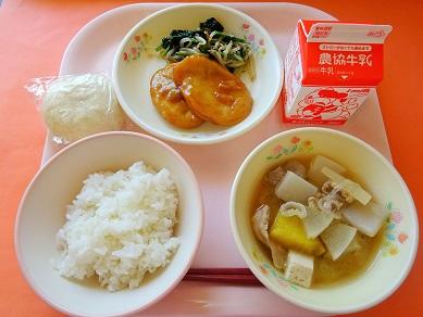ごはん(減) 牛乳 さつま揚げの三味焼き ごま和え とん汁 氷室まんじゅう |