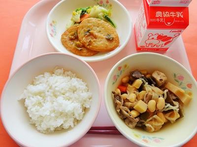 ごはん 牛乳 さつまあげの三味焼き(1~3年生は1枚) ごま酢和え 江戸っ子煮 |