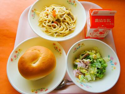 ミルクロール(減) 牛乳 和風スパゲティ ハムサラダ |