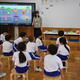 本校では、1年生から英語の学習に取り組んでいます。(1・2年生「グローバルタイム」として30分×25回) ALTもいっしょに遊びや歌をとおして英語のコミュニケーション力を育てます。 英語以外の教科にもALTが入り、英語に慣れ親しむようにしています。 本校には、2人のALTが常駐し、すべての英語の時間に指導してくれます。 ICTを使って、自分のペースで会話力を高めています。 後期課程では、できる限り英語で授業を進めるようにし、使える英語を目指しています。