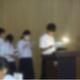 Ⅰ部の式典では、地域の方から激励の言葉と記念品をいただき、生徒代表が誓いの言葉を述べました。